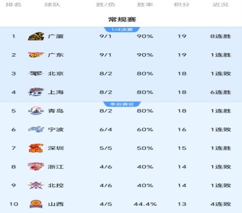 凭借一波5连胜战绩,上海队成为了最强黑马,排名跃居第四,仅次于广厦队、北京队、广东队三支争冠热门。