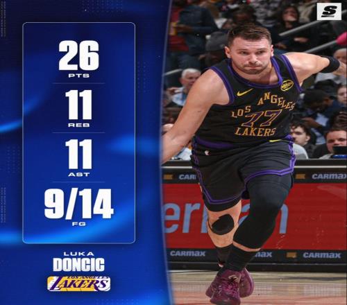 这场比赛湖人面对联盟顶级鱼腩奇才,这支奇才的攻防效率都极差,卢卡-东契奇自然不会浪费这样的机会,首节他就火力全开9中6,三分6中3,狂揽16分7篮板7助攻2抢断的准三双数据。